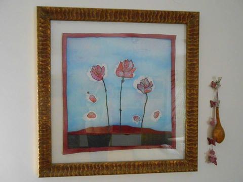 Naziv rada: ” Ruže ”, akvarel na svili, 72 x 74 cm
