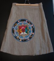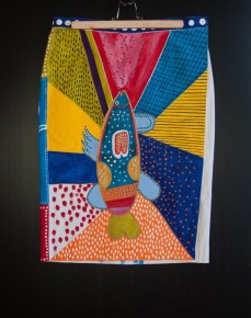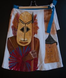 Još jedan odjevni predmet nositelj je čistog figurativnog prikaza. Jarkim bojama Tamara dočarava slikarije australskih domorodaca i oživljava bijelo platno suknje, od kojeg su sada vidljivi tek manji rubni dijelovi.