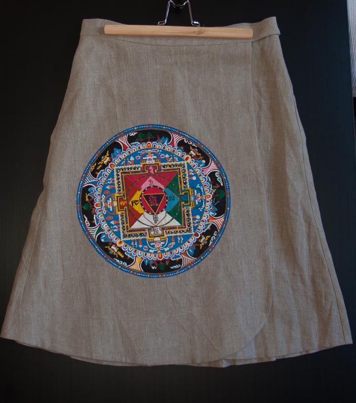 Još jedan odjevni predmet nositelj je čistog figurativnog prikaza. Jarkim bojama Tamara dočarava slikarije australskih domorodaca i oživljava bijelo platno suknje, od kojeg su sada vidljivi tek manji rubni dijelovi.