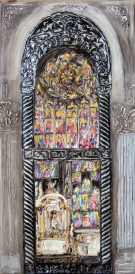 Ne prikazuje baštinu tek na razini atraktivnog predloška, već joj se obraća s poštovanjem, s umjetničkom odgovornošću, s mjerom preobrazbe, čuvajući vrijednosti ishodišnog u prikazima osobne interpretacije. I u zgusnutosti scene i slobodnijoj razvedenosti, pomalo konkavno konveksnog ritma, ne nedostaje preglednosti u ukupnosti slikarskih partitura. Gradivnih osnova za ozračje zanimljivih ikonografskih odabira, doživljenih u tradiciji velikih tema, ali i približavanja scenariju, možda i metaforičnog značenja. Dramaturgija slika proizlazi i iz raznovrsnosti opni površine, iz likovne tjelesnosti oblika, i stupnjevanja sadržajne zbilje, čime se opisnost i naznake figurativnog sjedinjuju s dekorativnim.