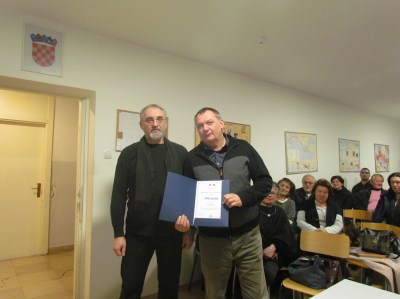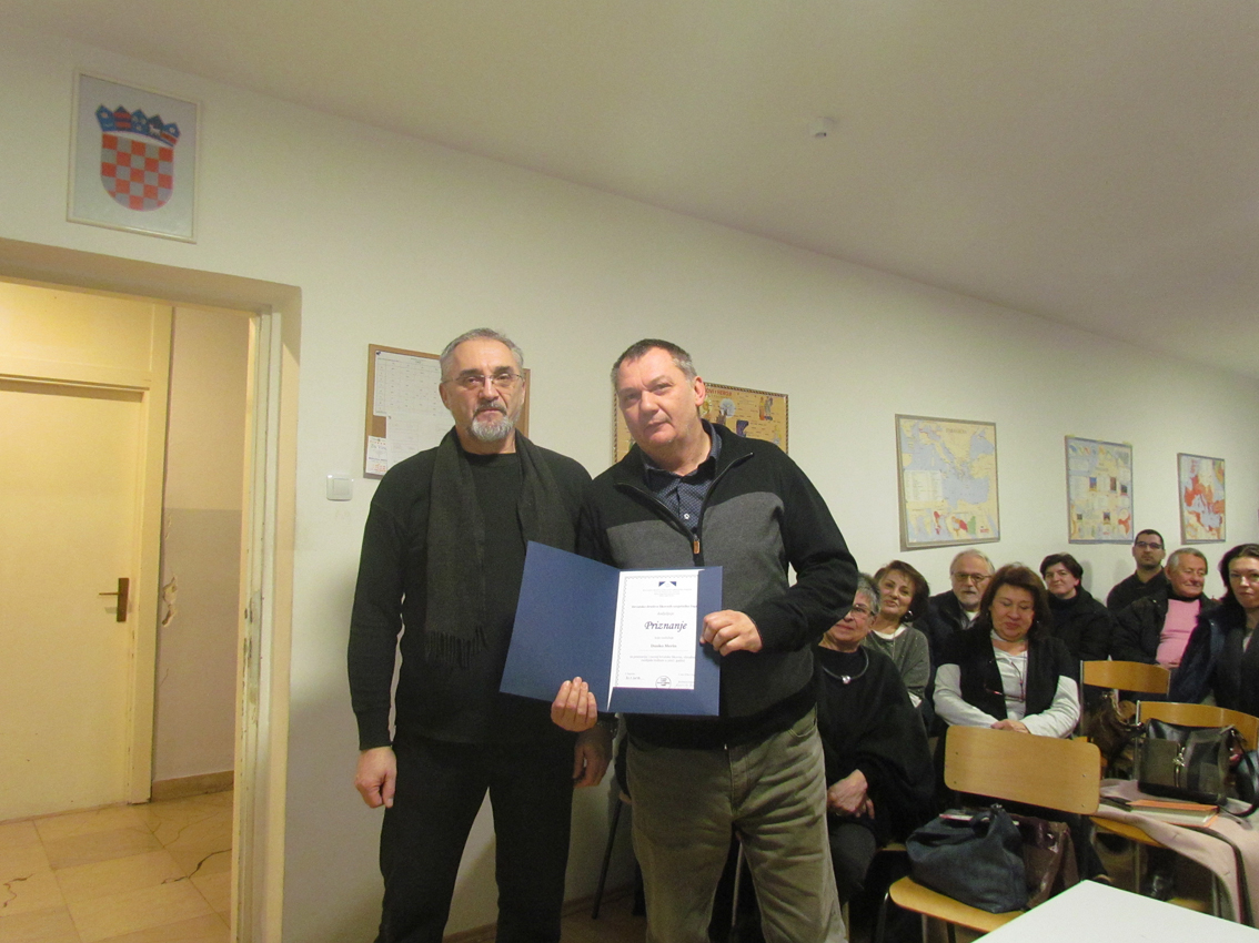 Robert Štimec dodjeljuje Priznanje HDLU Zagreb Danku Merinu