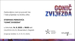 U četvrtak, 14. 9. 2023. u 18 sati u Galeriji Izlog (Bosanska 2, Zagreb) otvara se samostalna izložba Stjepana Perkovića pod nazivom ”Gonič zvijezda”. Izložba će se moći pogledati do 15. 10. 2023.