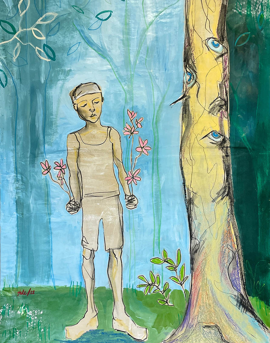 Antonija Belovari na svojoj slici ‘’Zov šume’’ prikazuje djevojku intenzivnog pogleda što nam približava težnju da se očuva izvorna čistoća netaknute divljine, dok Jelena Martinović na svojoj slici ”Be kind to Nature” ocrtava lik dječaka u središtu plavičaste šume, u intuitivnoj komunikaciji sa cvijećem i drvetom, koje kao da ima oči na delikatnoj bjeličastoj kori i osjetilno je biće, protkano strujanjima životne energije.