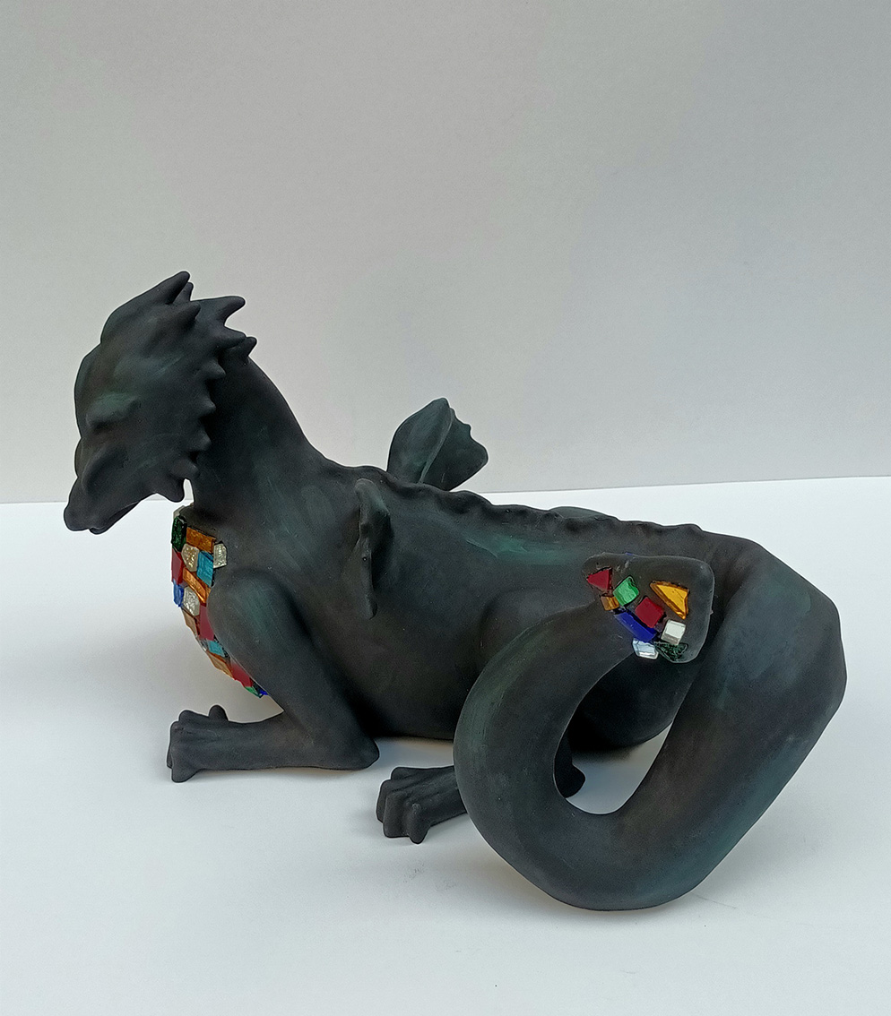 Marijana Džepina crta jednoroga u zaokruženim potezima kao biće koje simbolizira duhovnu jasnoću, magične sposobnosti i slobodu osobne transformacije, dok Ljiljana Tršan prikazuje harpiju u centralnoj kompoziciji, sa naglašenom dvojnošću pomalo prijetećeg ženskog lika sa tijelom i krilima ptice, koji donosi kaznu i osvetu grješnicima, a prema suvremenim interpretacijama predstavlja jake i neovisne žene, koje se odbijaju prilagoditi društvenim normama i očekivanjima. Sanja Fališevac u odgovoru na zadanu temu životinjskog carstva kreirala je skulpturu crnog zmaja, moćnog i dominantnog, sa znakovitim nazivom ‘’Gospodar taštine’’, u skladu i sa dvojakom simbolikom zmajeva u različitim mitološkim prikazima, koji su nekad zastrašivali ljude, a nekad ih očaravali svojim nadnaravnim moćima. Tu su i vukodlaci (Gojanović), koji simboliziraju dualnosti čovjekove sjenovite i nekontrolirane prirode, no također i moć transformacije, slobodu u nepoznatoj divljini, prepunoj mogućnosti.