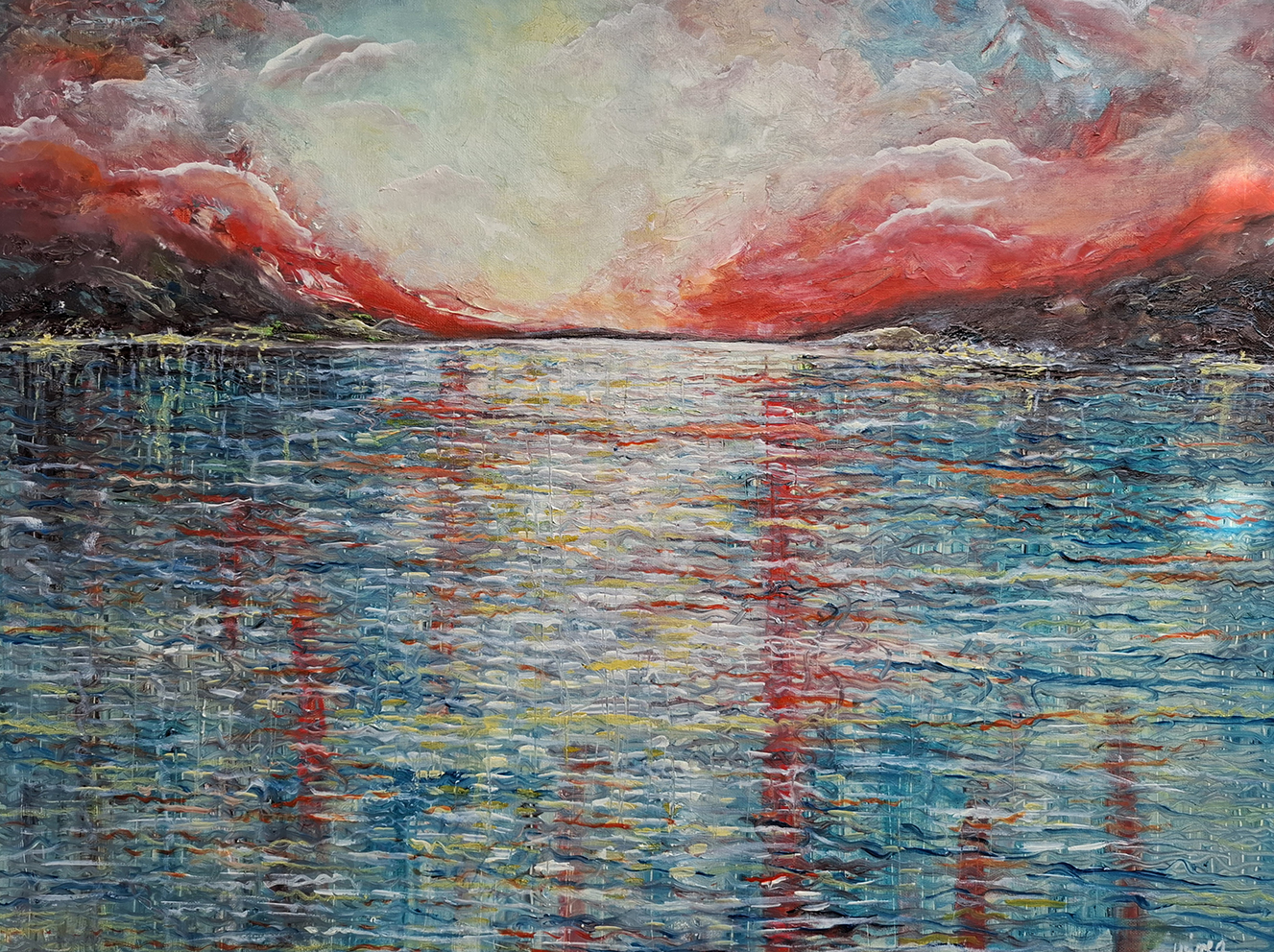 Tu nema čvrsto definiranih granice između neba i mora, stvarnosti i sna — sve se pretače jedno u drugo, u beskrajnoj igri tonova, pokreta i tišine. More u njezinim slikama postaje prozračno, gotovo bestežinsko. Ovdje su sunčevi odbljesci kao glazbeni motivi, ritmizirane strukture svjetlosti koje se grupiraju, mreškaju i razgranavaju poput prozirnih koraljnih lepeza, šireći se prema horizontu kao energizirane mreže svijesti i osjećaja. U složenoj paleti njezina kista krije se čitav jedan unutarnji svijet. Svaki potez kista, svaka nijansa boje, svaka mrlja ili linija ima i svoju poeziju i preobrazbu utisaka koji se danima i tjednima talože u njezinom viđenju. Šetnje uz more, trenuci zatečene ljepote – sve to postaje sirovi materijal njezine unutarnje alkemije, iz koje niču slike kao vječno promjenjiva stanja svijesti.
