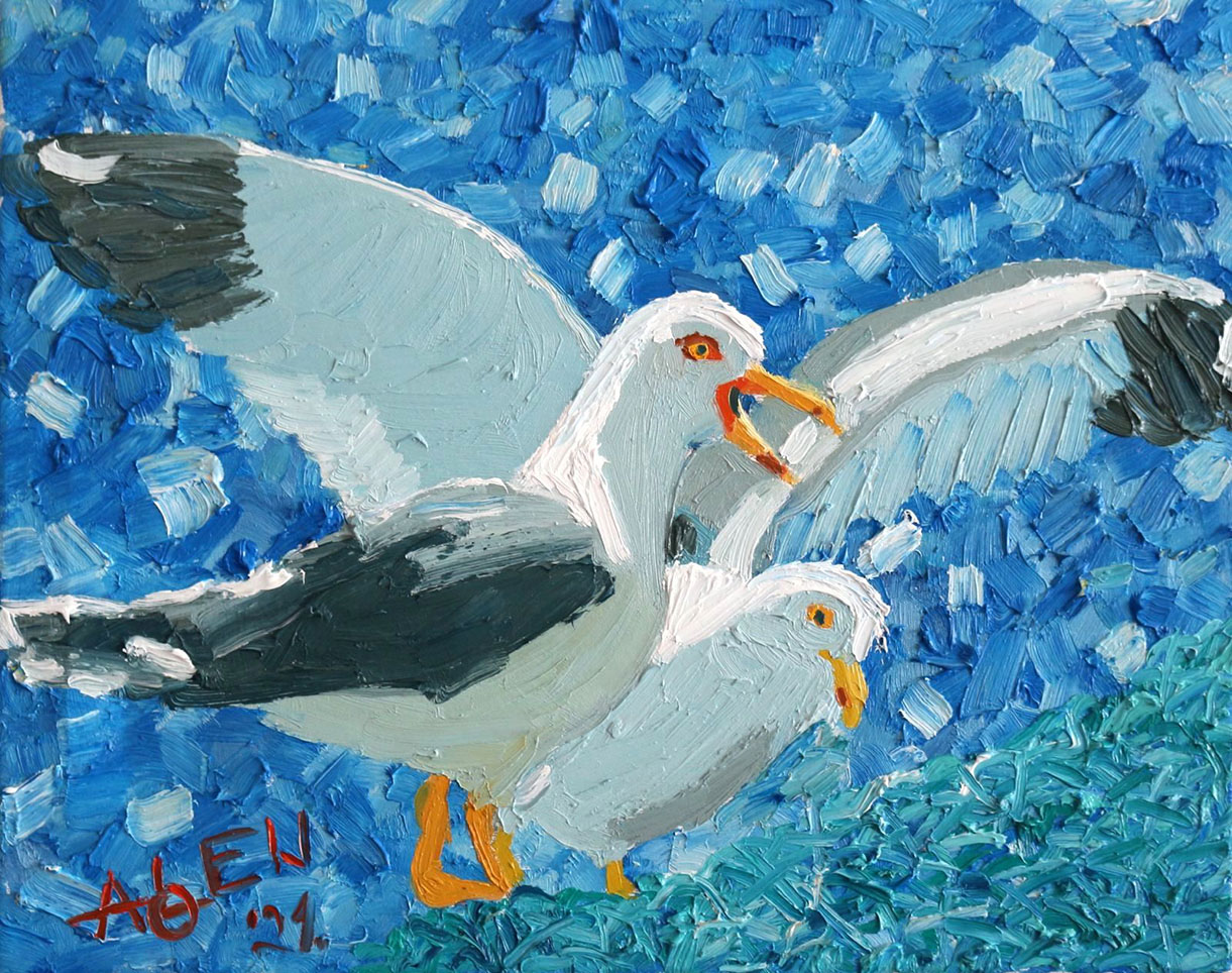Alen Kasumović, ”Dva galeba”, ulje na platnu, 50×40 cm