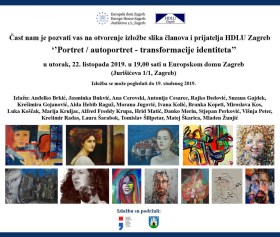 U utorak, 22. listopada 2019. u Europskom domu Zagreb (Jurišićeva 1/1, Zagreb), otvorena je skupna izložba slika članova i prijatelja HDLU Zagreb, pod nazivom ’’Portret / autoportret – transformacije identiteta’’. Izložbu su, u prisutnosti brojnih gostiju, otvorile izaslanica gradonačelnika – gospođa Eva Brunović iz Gradskog ureda za kulturu Zagreb i Krešimira Gojanović, predsjednica HDLU Zagreb.