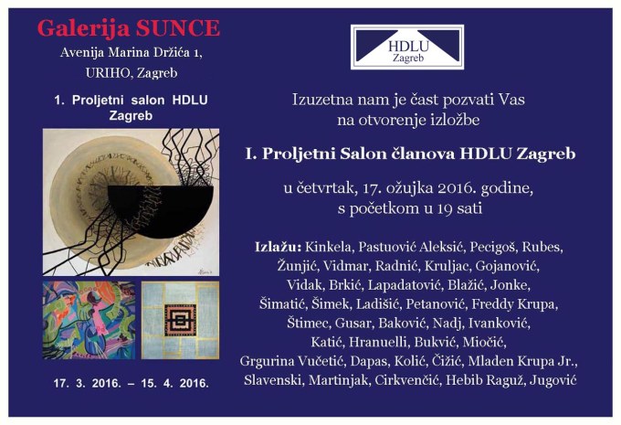 Zagrebački likovni salon 2016 u organizaciji HDLU Zagreb predstavlja likovna ostvarenja umjetnika i članova HDLU Zagreb u tradicionalnim likovnim tehnikama slike, crteža i umjetničke grafike, u individualnom autorskom izrazu svakog pojedinog umjetnika, koji se predstavio sa jednim djelom po vlastitom izboru, doprinoseći na taj način raznolikosti i slobodi osobnih likovnih rukopisa.